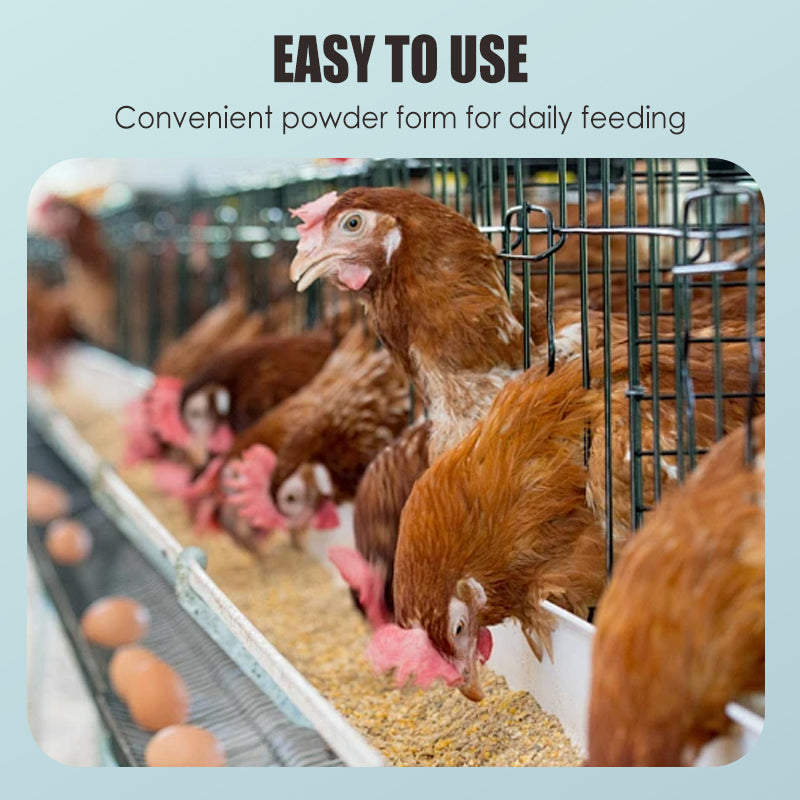 VEELZIJDIG EN EENVOUDIG IN GEBRUIK – Dit supplement is ideaal voor verschillende pluimveehouderijen en kan gemakkelijk worden opgenomen in de dagelijkse voerroutine. De poedervorm zorgt voor eenvoudig gebruik, zowel in kleinschalige als grootschalige bedrijven, en levert steeds betrouwbare resultaten.