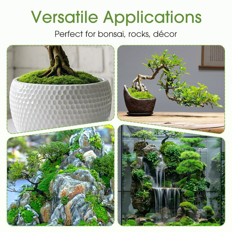 VEELZIJDIG LANDSCHAPSGEBRUIK – Ideaal voor potplanten, rotstuinen, bonsai-basis of kleine decoratieve scènes. Het verbetert de textuur, diepte en een natuurlijke uitstraling in zowel huiselijke als professionele omgevingen. Een kleine hoeveelheid bedekt een groot oppervlak en geeft uw ruimtes een serene, met mos bedekte charme.